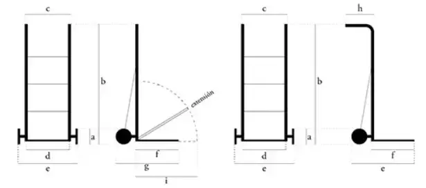- Dimensiones (cm): a: 20 / b: 120 / c: 44 / d: 40 / e: 54 / f: 30 / g: 52 / h: - / i: -